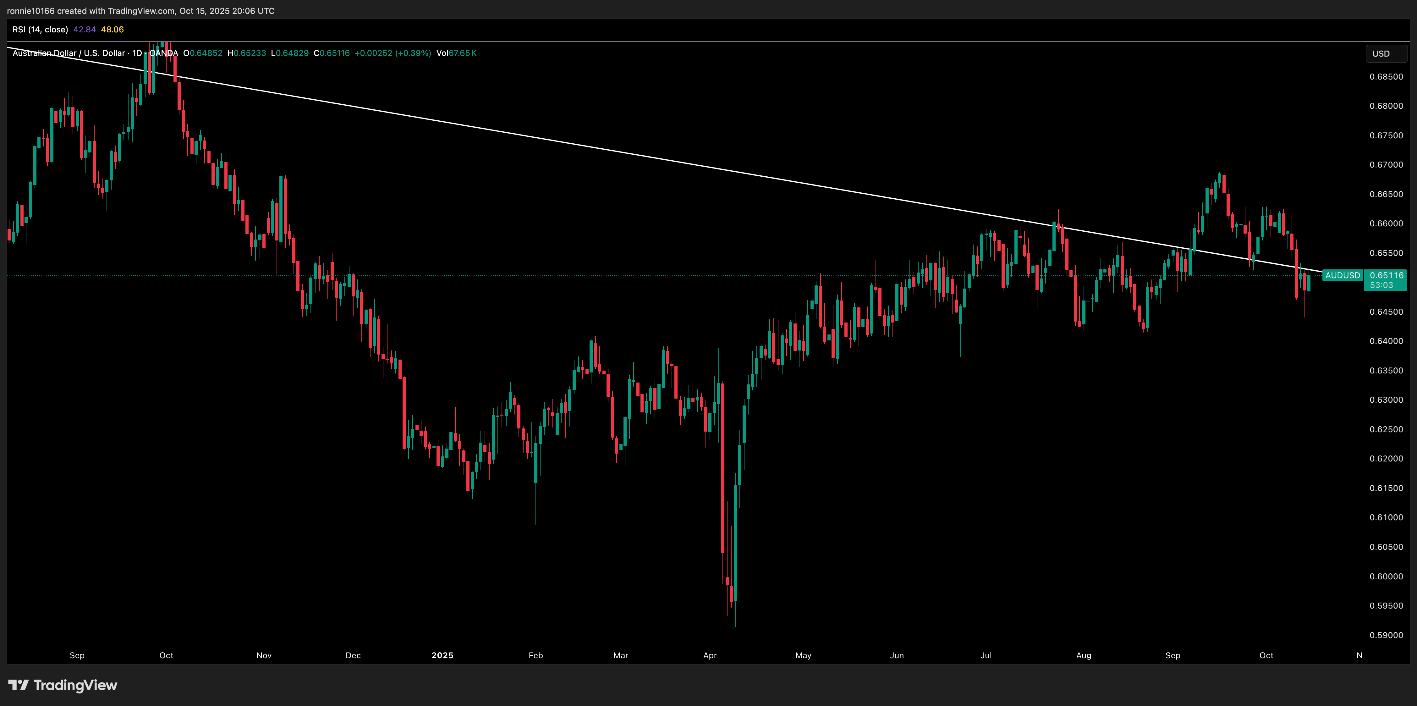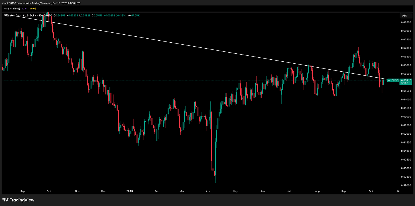 That’s the 15 year downtrend on the daily chart. Could play a long USD position through shorting AUD/USD.