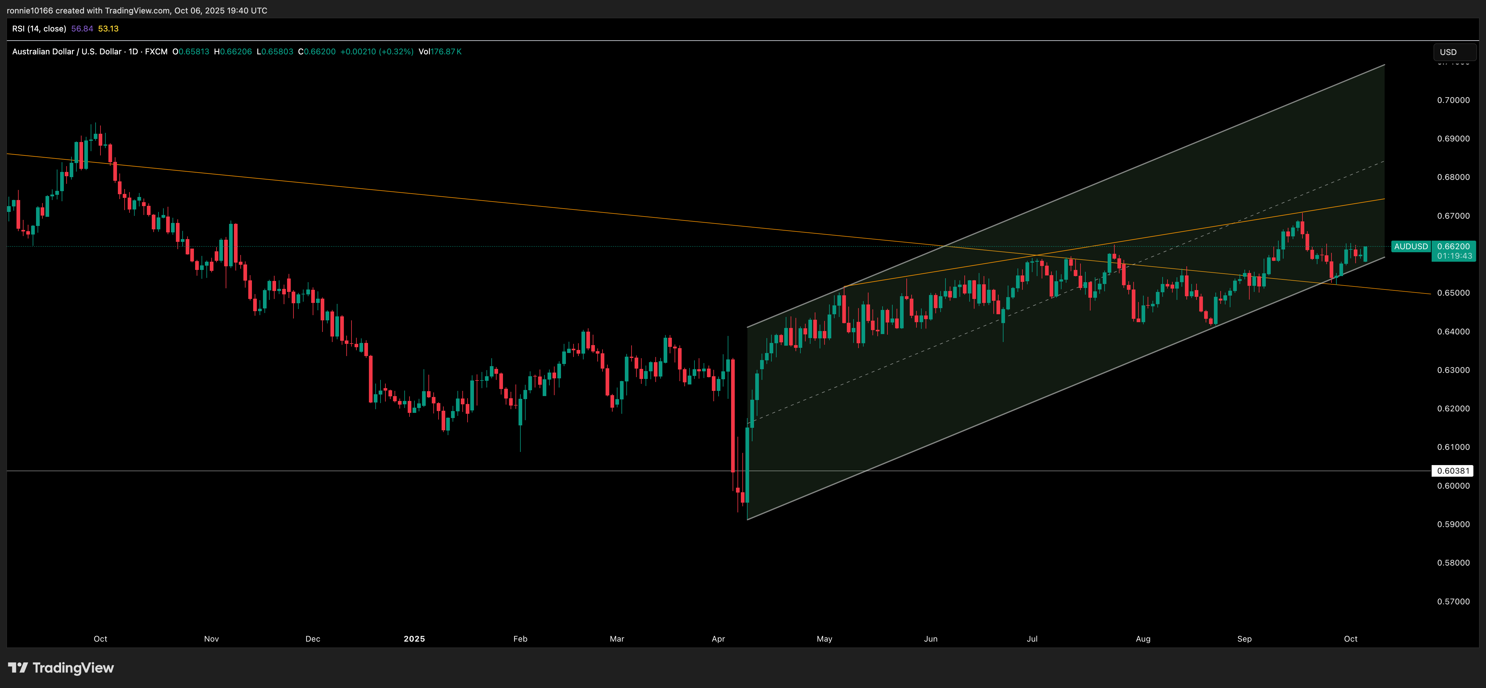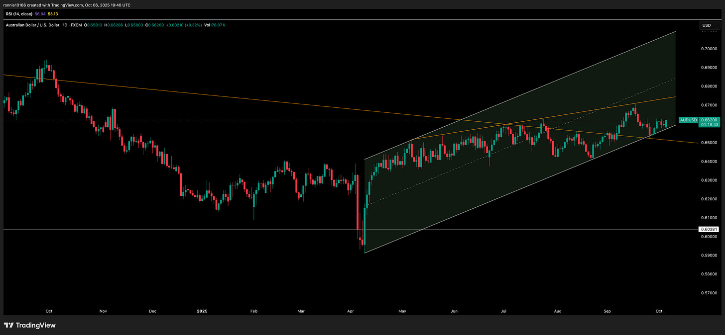 AUD/USD Update 7 October 2025Hanging in there.Ian ReynoldsOct 06, 2025∙ PaidShareThe sudden strength in USD hasn’t much impacted the Aussie.Trend support needs to hold at 0.6575 for a run up to 0.6735 and beyond.If support gives, next levels are 0.6525 and 0.6410.This post is for paid subscribersSubscribeAlready a paid subscriber? Sign inPreviousNext