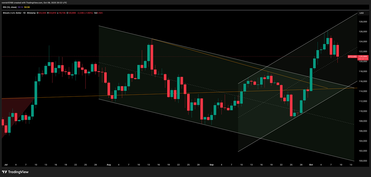 Bitcoin Update 10 October 2025Down but not outIan ReynoldsOct 10, 2025∙ PaidShareAmongst the chaos of Gold and Silver, Bitcoin is looking bid. I like the long wicks below 121.3k and would like to see price bounce off 117k.This post is for paid subscribersSubscribeAlready a paid subscriber? Sign inPreviousNext