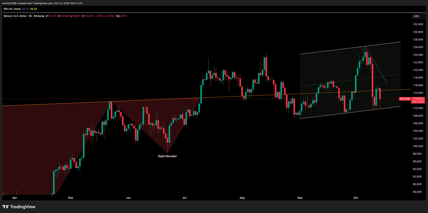 For 4 days out of 5 the 109k support has held, but rallies seem to get nowhere. With leverage flushed out and whales shorting, sentiment is low.