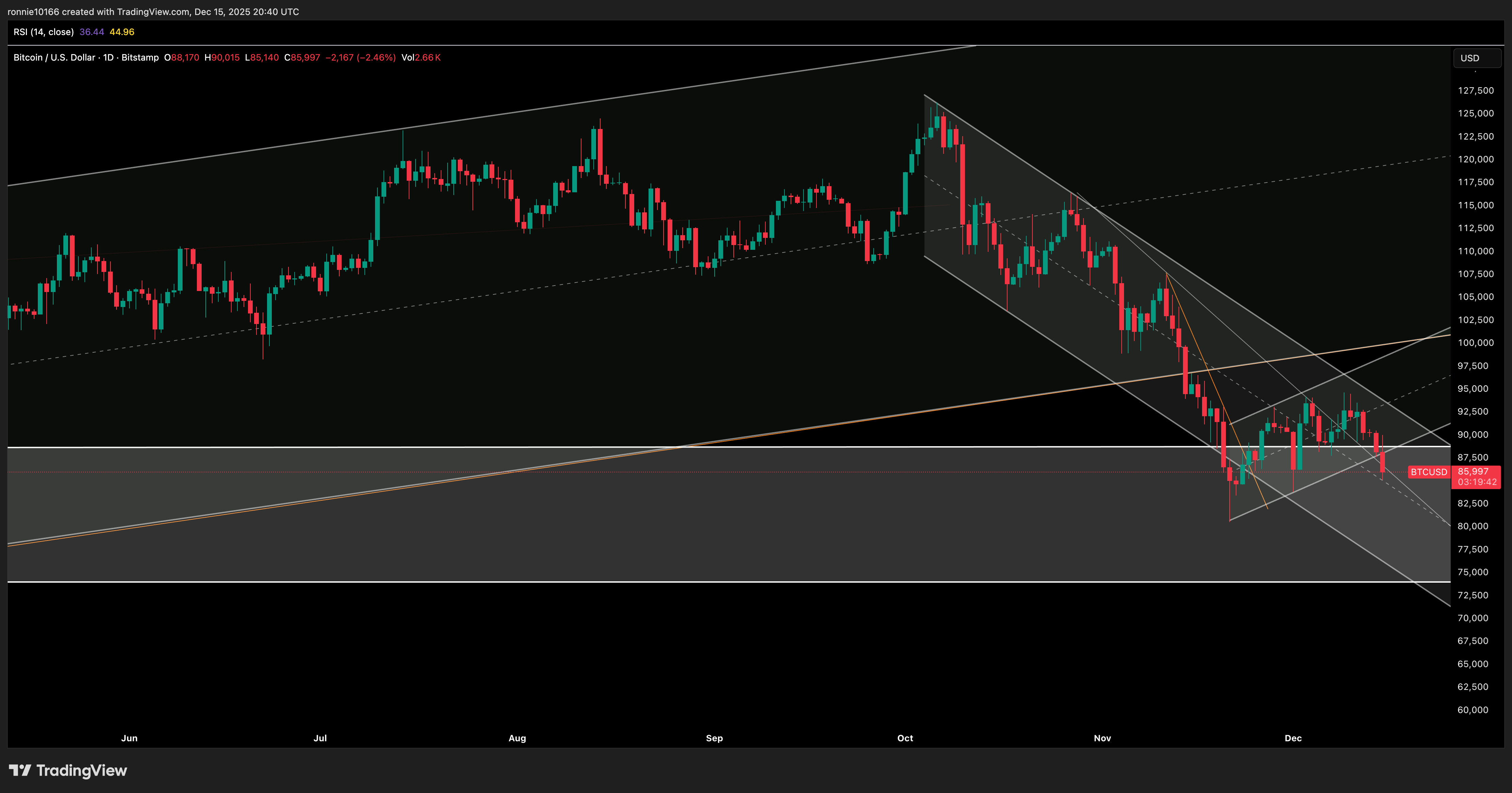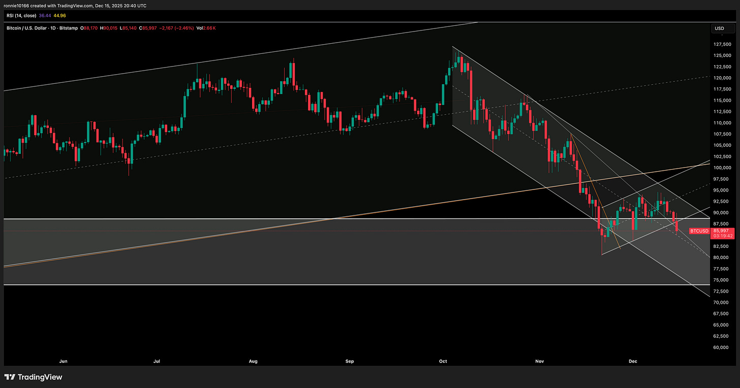 Bitcoin breaks the short-term support channel at 88k and plunges. Ditto Eth. Price action is very weak. We should definitely see 80k, where we have a small bid, and probably 74k soon after.