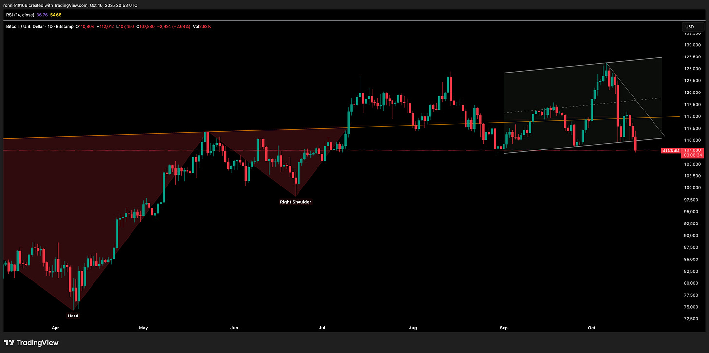 Bitcoin Update 17 October 2025Looking dangerousIan ReynoldsOct 16, 2025∙ PaidShareThe chances of a test of 100k are growing as price action is really poor. We couldn’t get above 116k and now 3 solid down days could lead to 7 solid down days.This post is for paid subscribersSubscribeAlready a paid subscriber? Sign inPreviousNext
