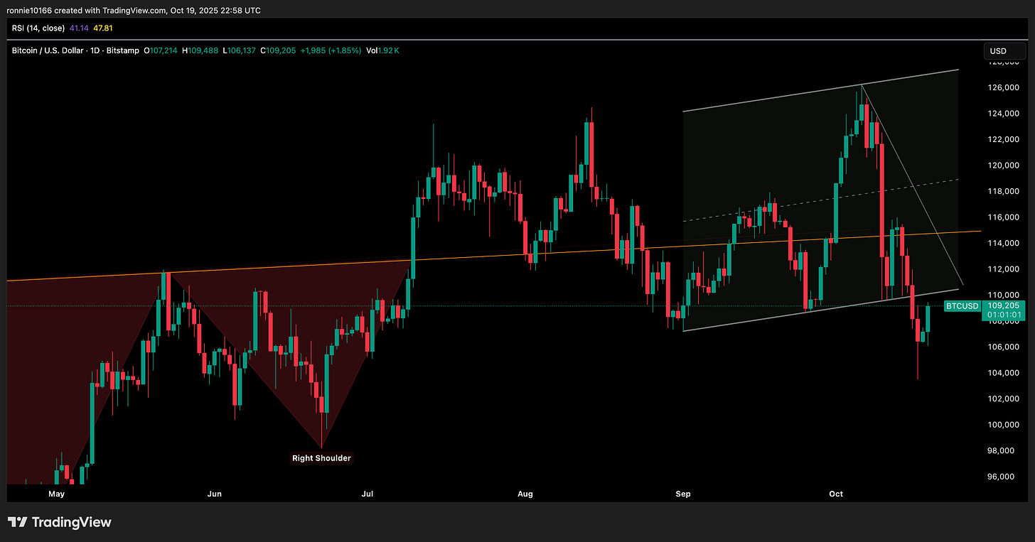 Bitcoin Update 20 October 2025A bounceIan ReynoldsOct 19, 2025∙ PaidShareA good break from the FUD but a lot of work to do on the upside. Trend resistance 110.1k, pivot tops at 115.8k and 117.9k all need to be conquered, along with consolidation above the minor downtrend at 115.8k.This post is for paid subscribersSubscribeAlready a paid subscriber? Sign inPreviousNext