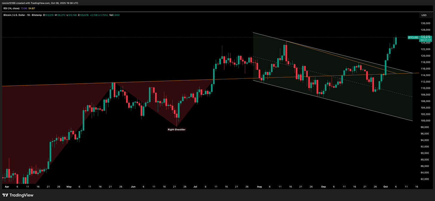 A pullback to 117k wouldn’t do much structural damage but certainly below 107k would prompt re-evaluation.