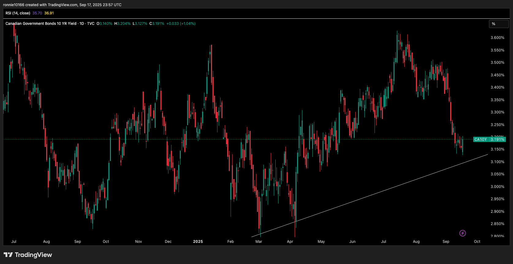 Tiff putting a floor on 10 year Canadian yields. That trend line goes back to COVID. I have to say that if rates go any lower in Canada then it’s because the economy is in real trouble and long-term rates would have to rise. Of course some central bank QE or similar could prove me wrong.