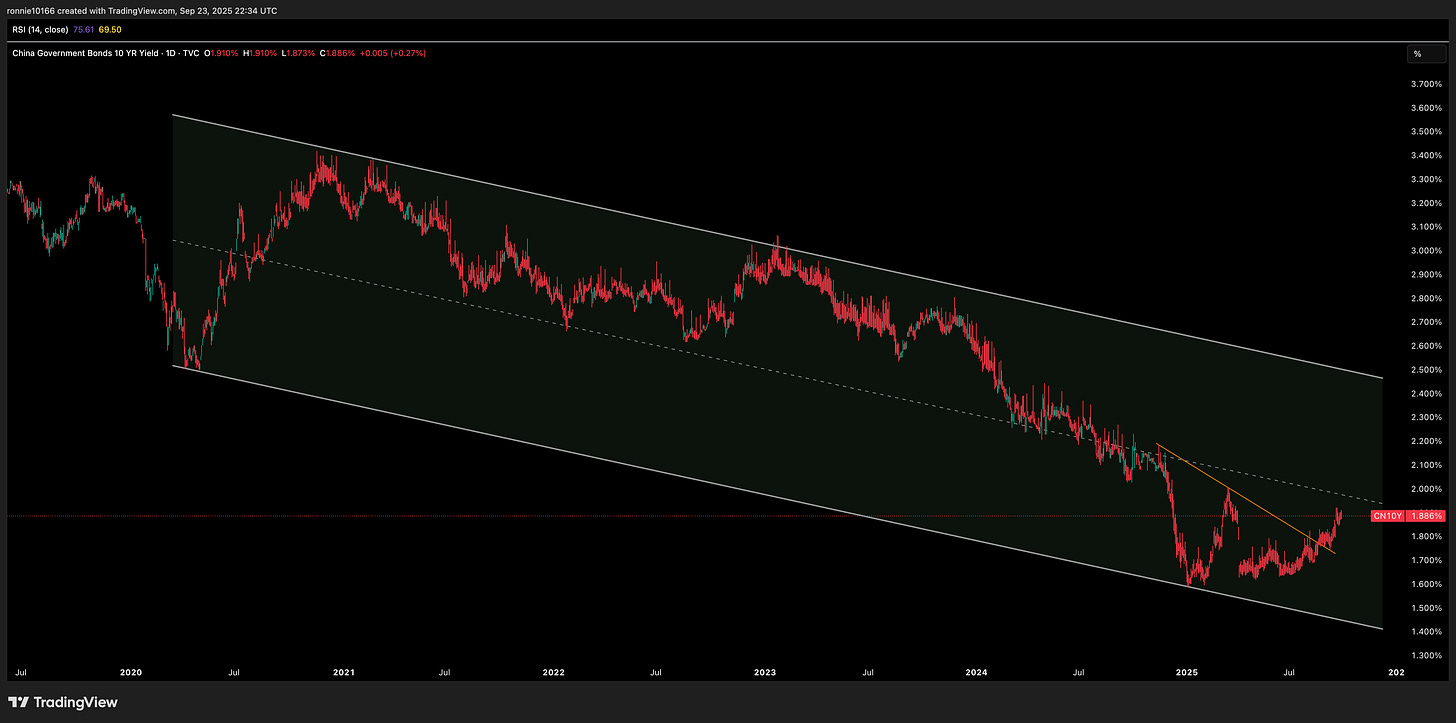 With Chinese stock markets consolidating, yield is reaching higher to find equilibrium.