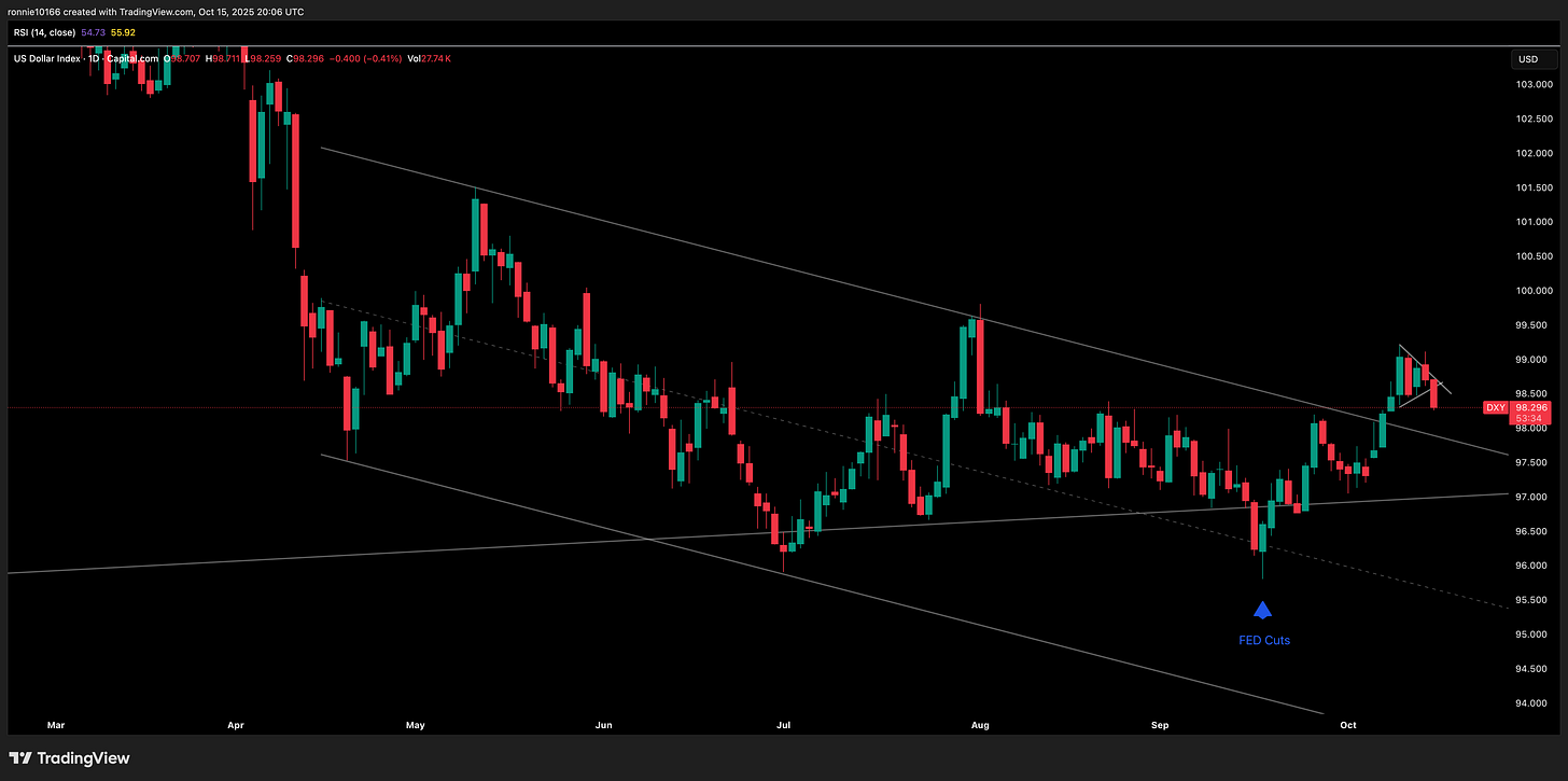 Long-term view of the USD having bottomed out still doesn’t have a resolution. AUD/USD supports this. Short-term we’ve broken lower to revisit the scene of the crime at 97.90 and there will be plenty of support before then.