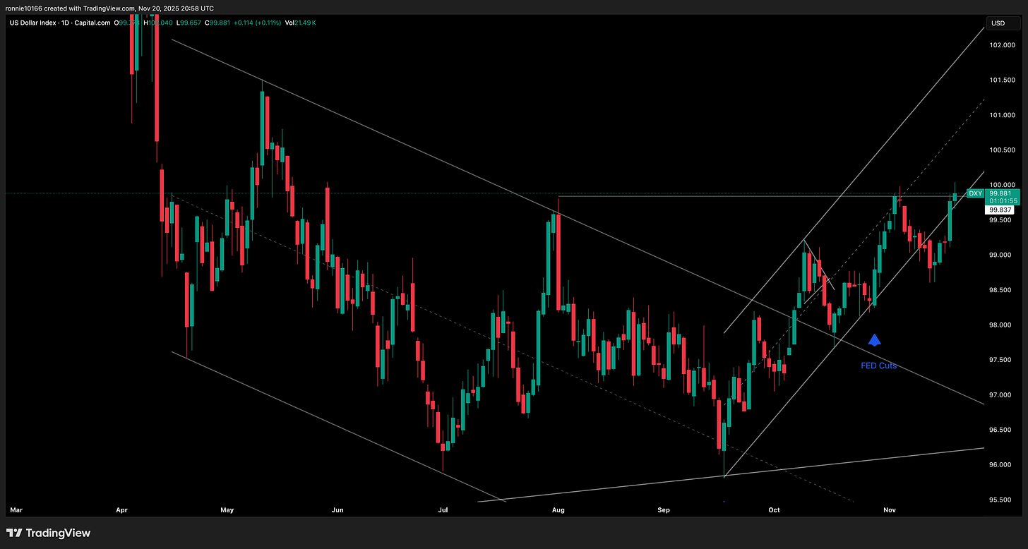 USD/YEN and USD/CAD performing well, for different reasons, is pulling the DXY up and if we do get no change in interest rates on 10 December, there could be a really good move higher.