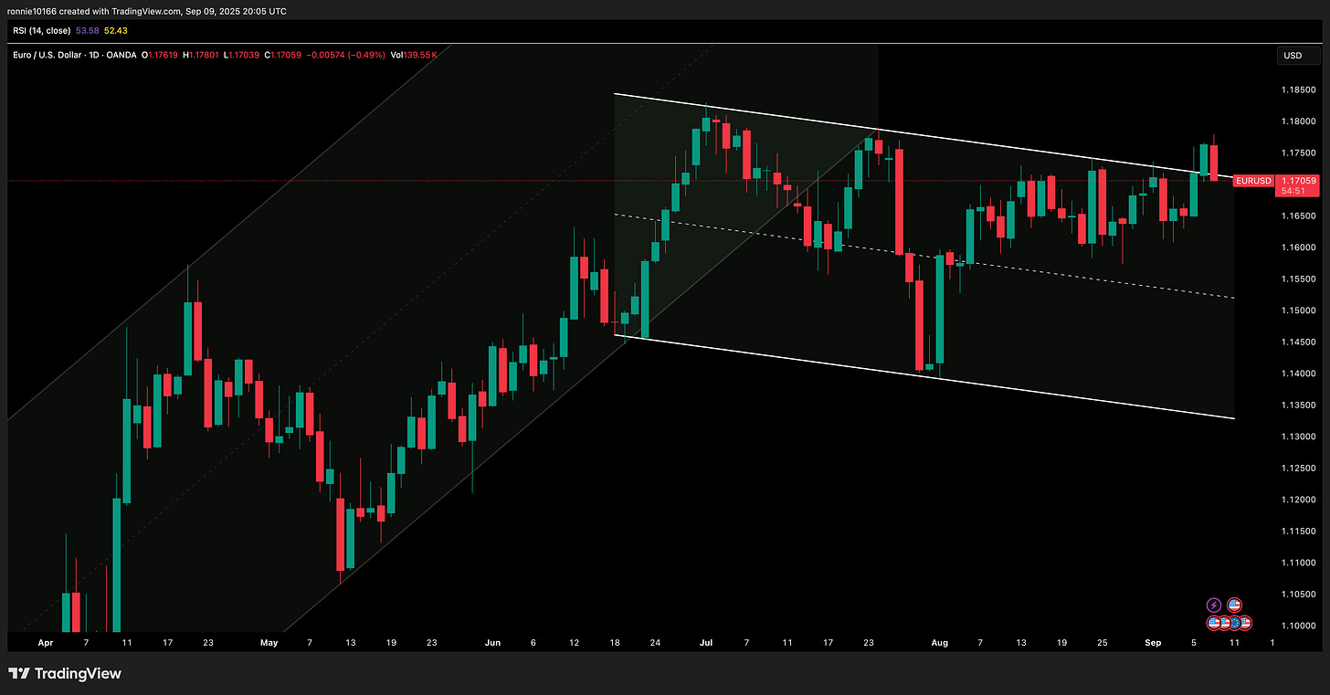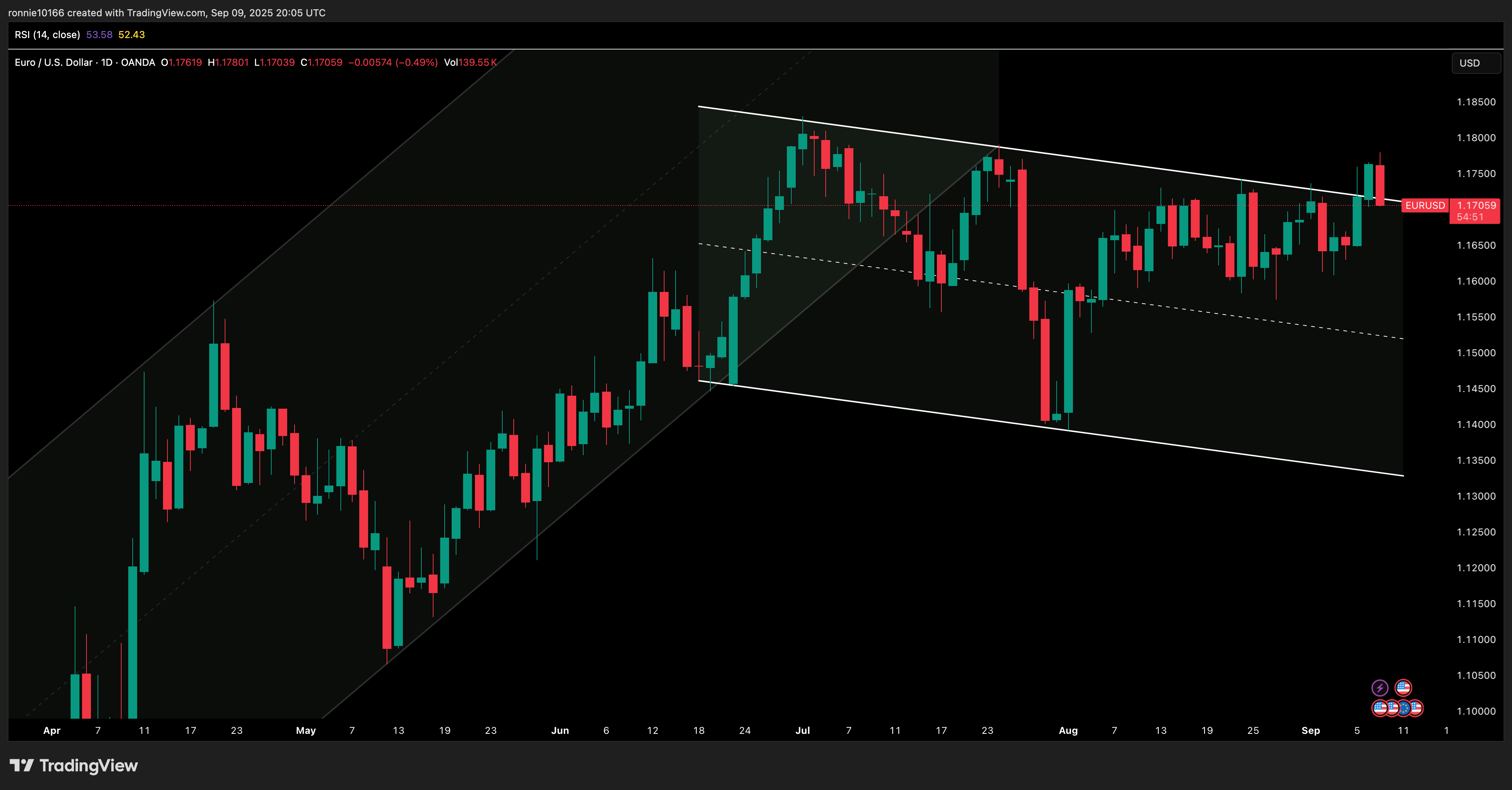 EUR/USD UpdateA break but no confirmationIan ReynoldsSep 09, 2025ShareNo confirmation for the Euro yet. May take a few key numbers such as CPI and PPI this week and maybe the FED next week.PreviousNext