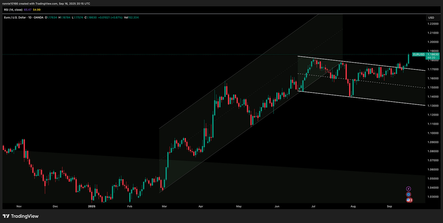 EUR/USD Update 17 September 2025Break and confirmIan ReynoldsSep 17, 2025∙ PaidShareEURO back to 2021 levels. If you’re building a position 1.2250 is nice place for price to return to, on the monthly chart.This post is for paid subscribersSubscribeAlready a paid subscriber? Sign inPreviousNext