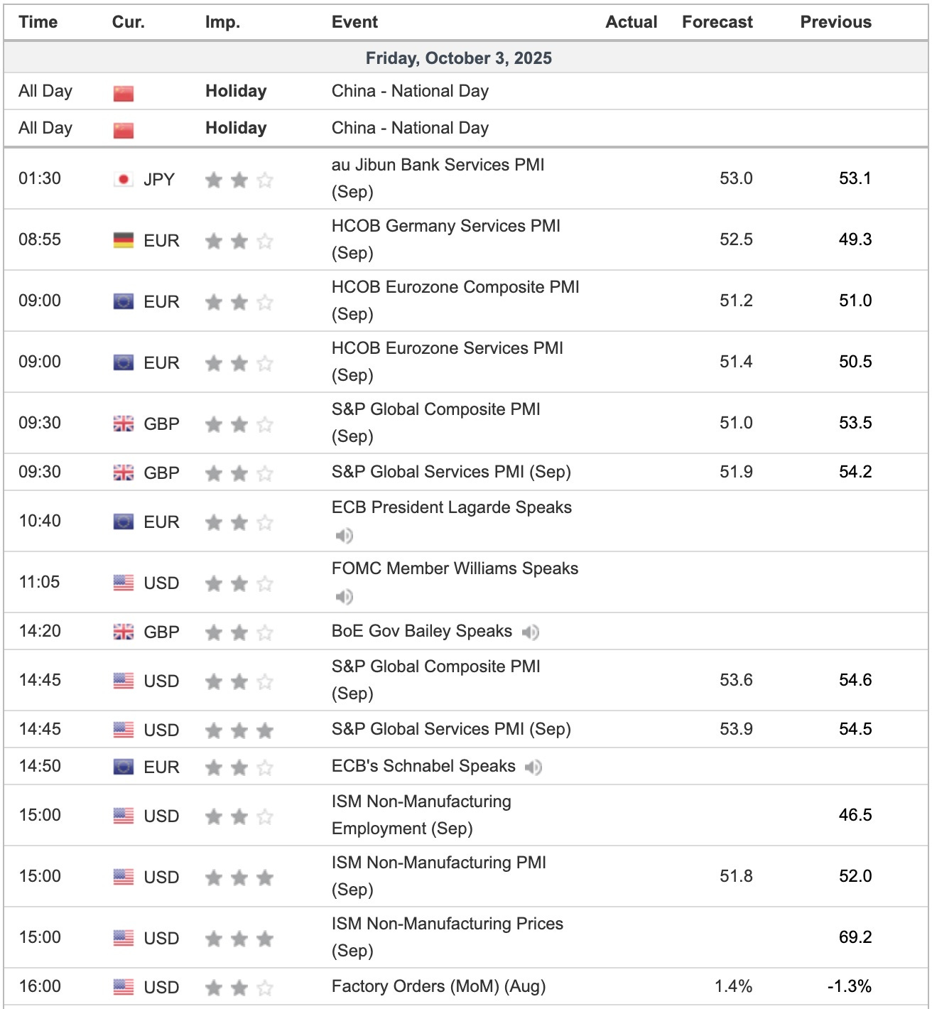 Financial Markets Update 3 October 2025