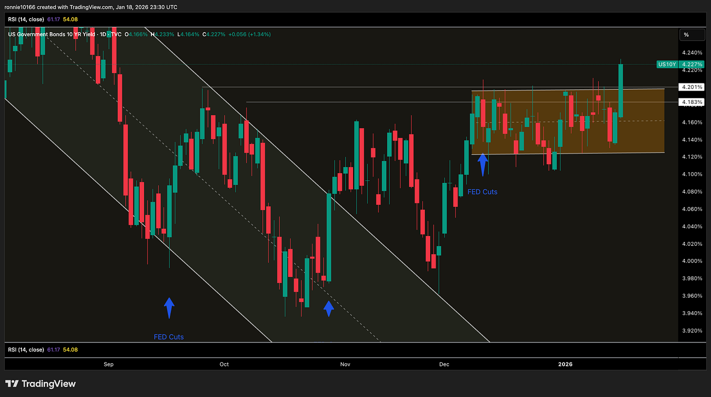 Markets are reacting strongly as US Treasuries fell late on Friday, breaking out of a very well established bull flag in yields.
