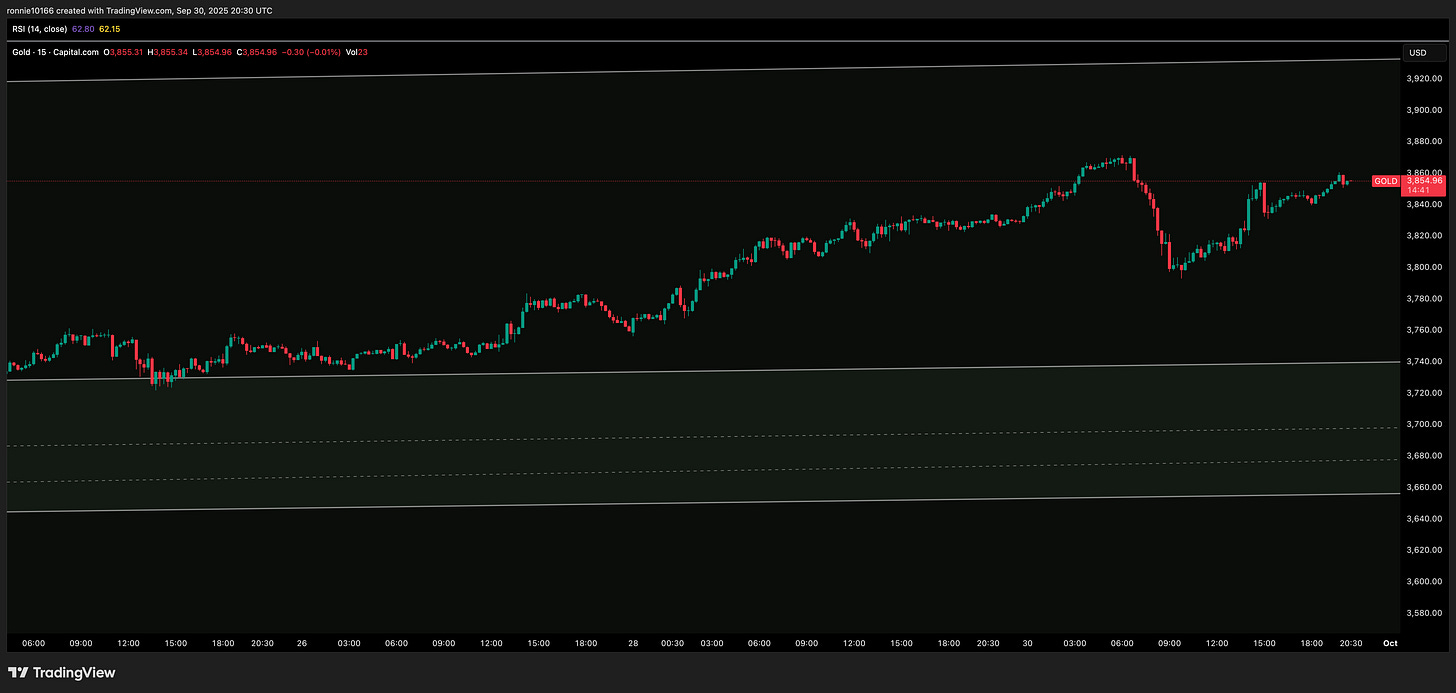 Gold spent most of the day drifting higher until a big wave of selling happened. The 15 minute chart above shows bullion banks trying to push the price down before 4,000 becomes a reality this week.