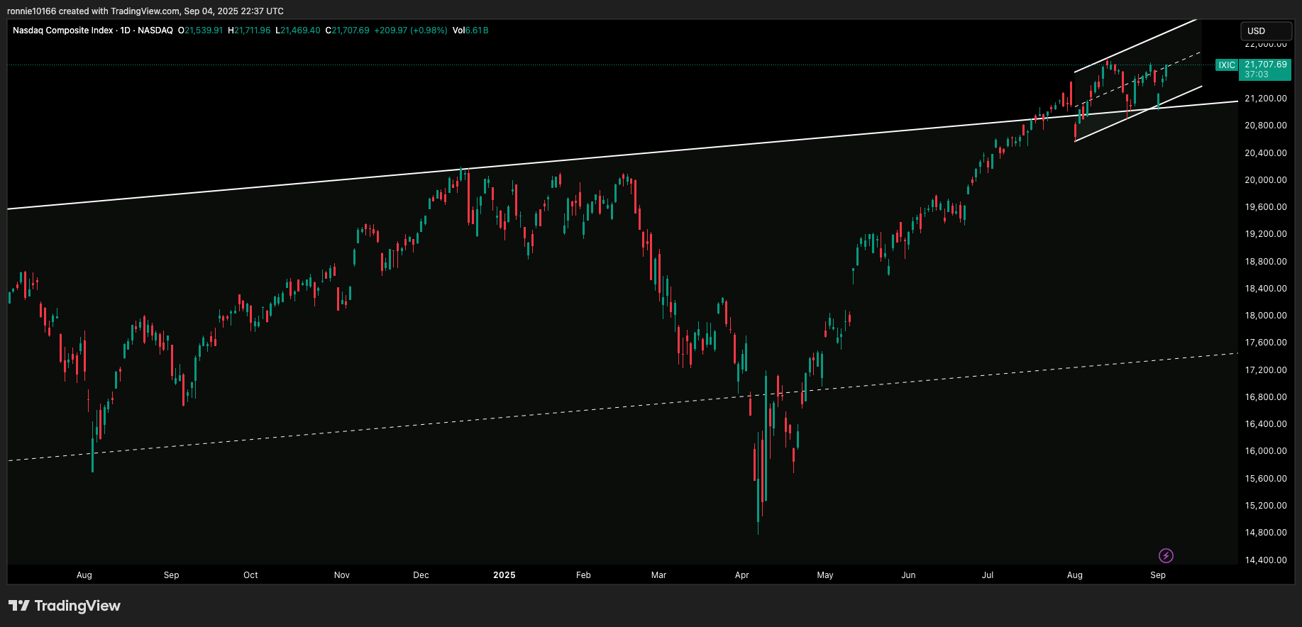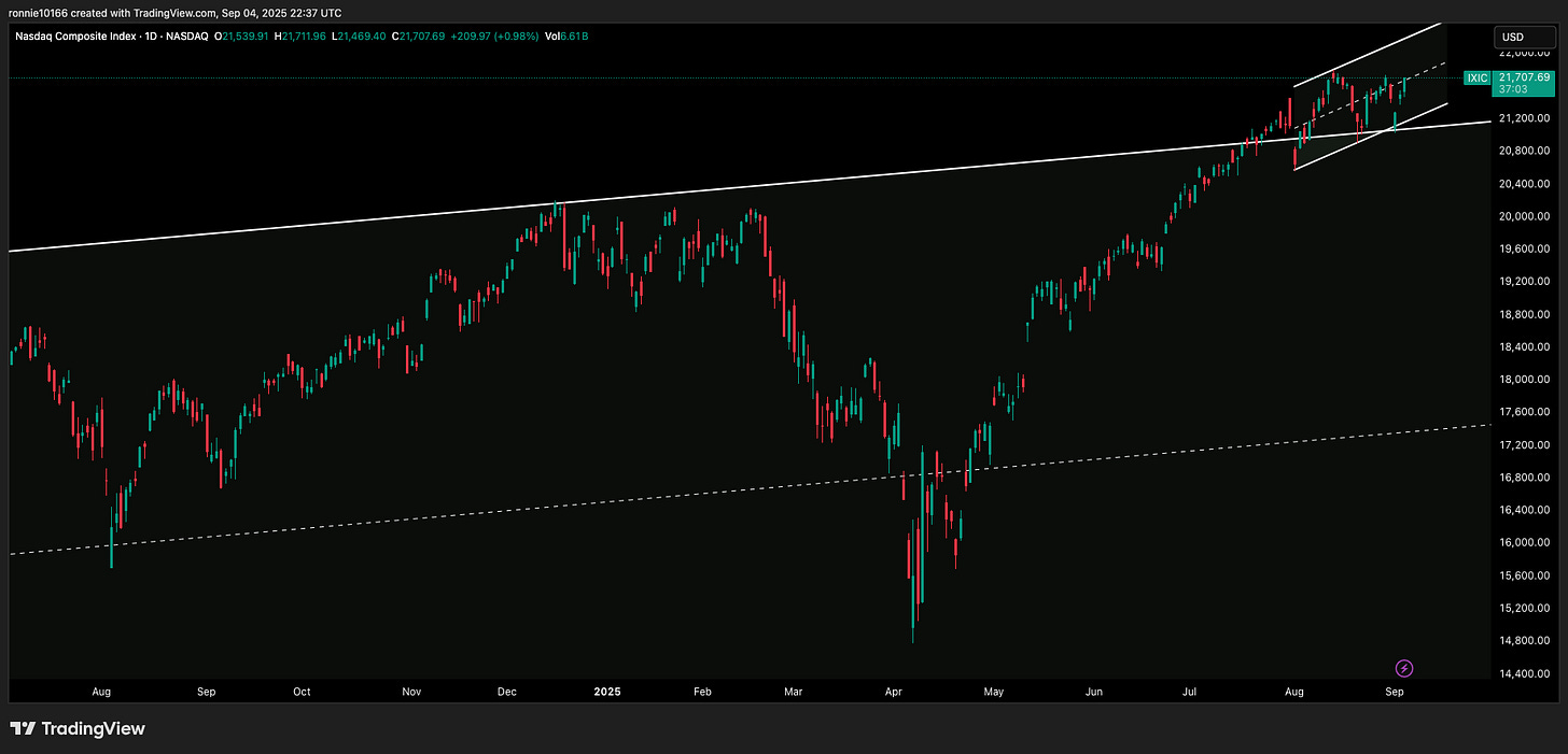 NASDAQ LeapsTextbook bounce for the NASDAQ as 2 support levels combine to anchor the new trend.Ian ReynoldsSep 04, 2025SharePreviousNext