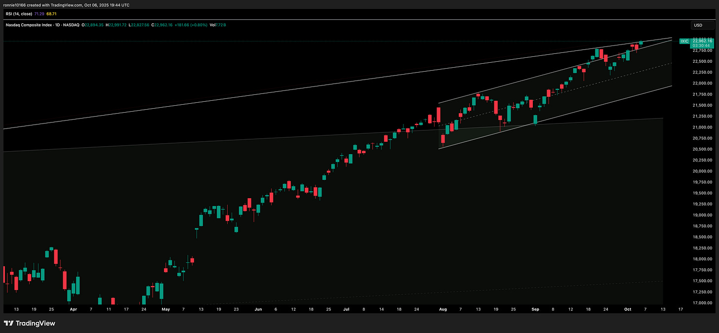 More all time highs and still constrained by the wedge. Equity markets being dragged up by non-sovereign asset spike and hope of money printing.
