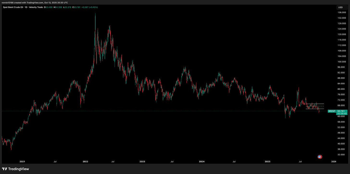 Plenty of downside on Spot Brent if price can get below $58.90.