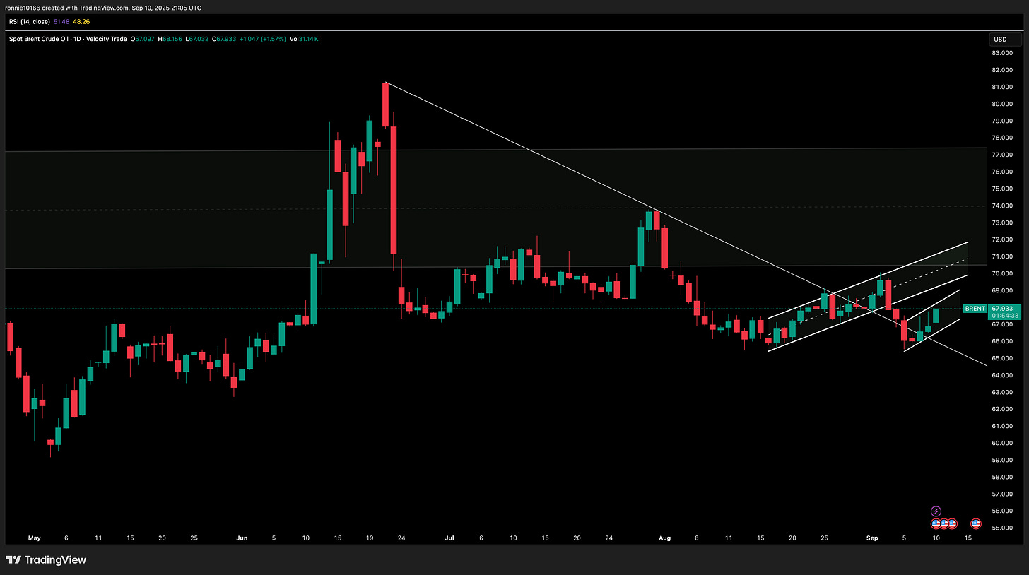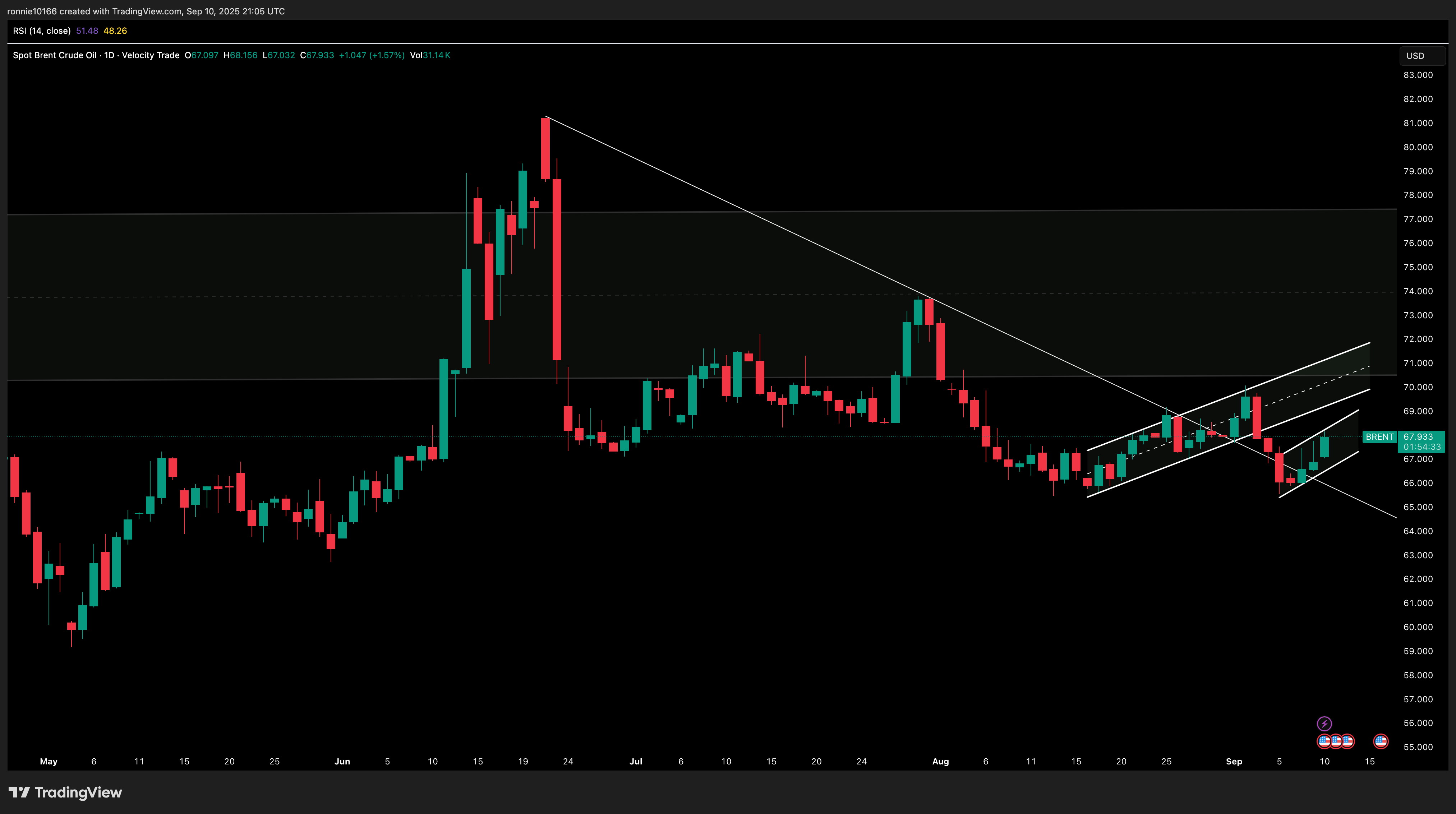 Oil UpdateMore hard work for oil bearsIan ReynoldsSep 10, 2025ShareAnother bear flag forming on BRENT as $66 proving strong support.PreviousNext