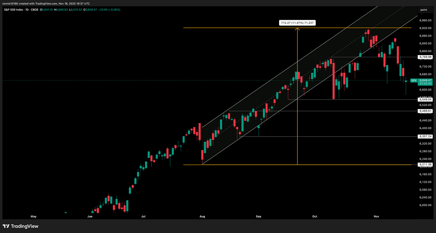 An 11% retracement brings price down to 6,200, the beginning of the move up from 1 August. The mood is sombre. So many different types of bad news. Yet we still can’t break the spike low from 10 October.