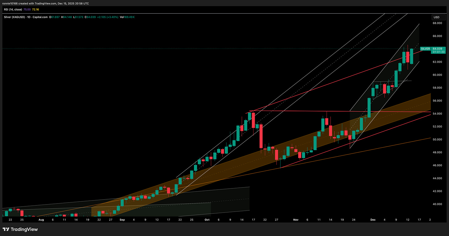 Silver Update 16 December 2025Silver knows no fearIan ReynoldsDec 15, 2025∙ PaidShareA super bullish close as Silver shrugs off the LBMA and COMEX hammer on Friday to look likely to have the highest closing price of all time.This post is for paid subscribersSubscribeAlready a paid subscriber? Sign inPreviousNext