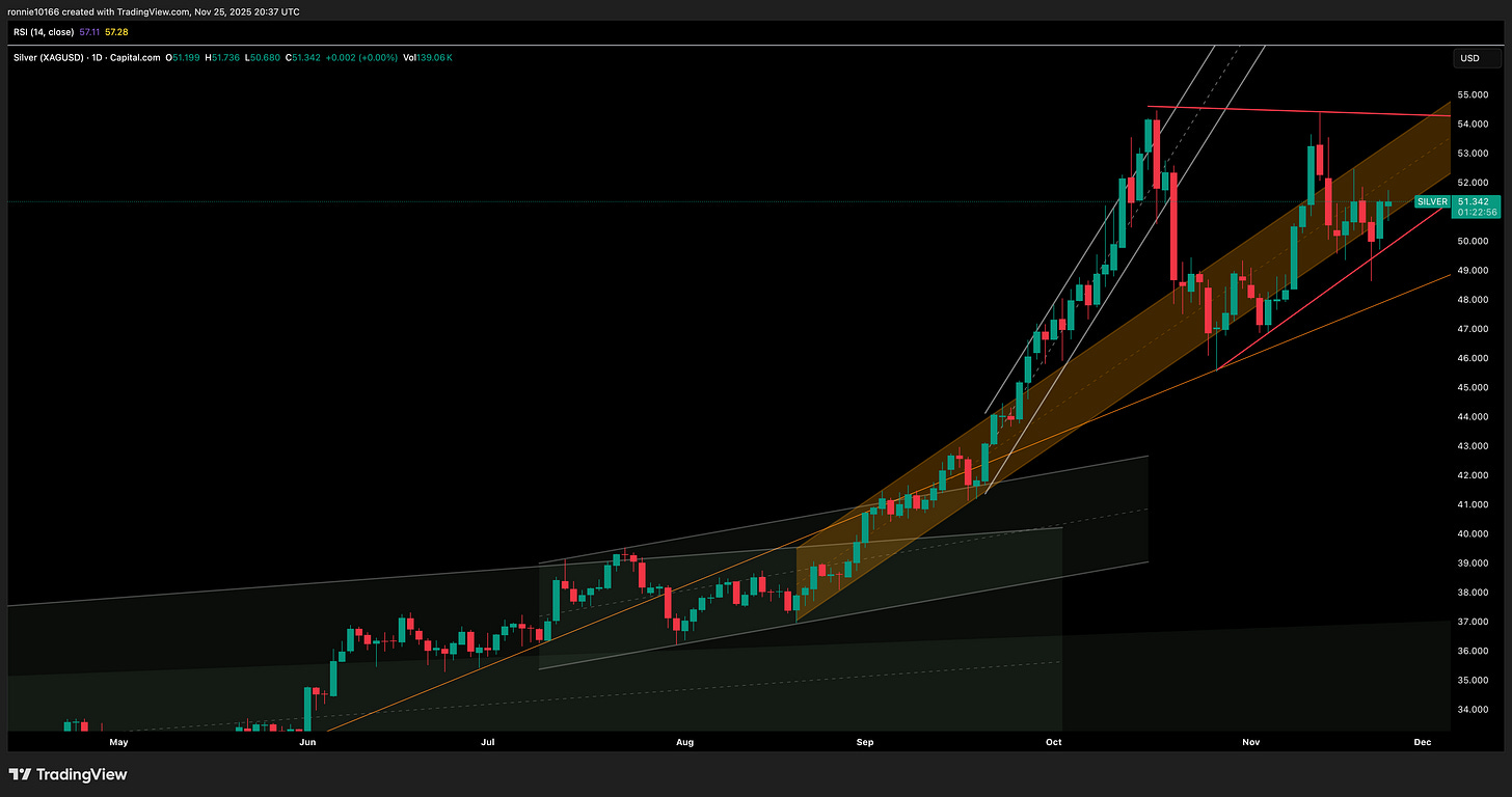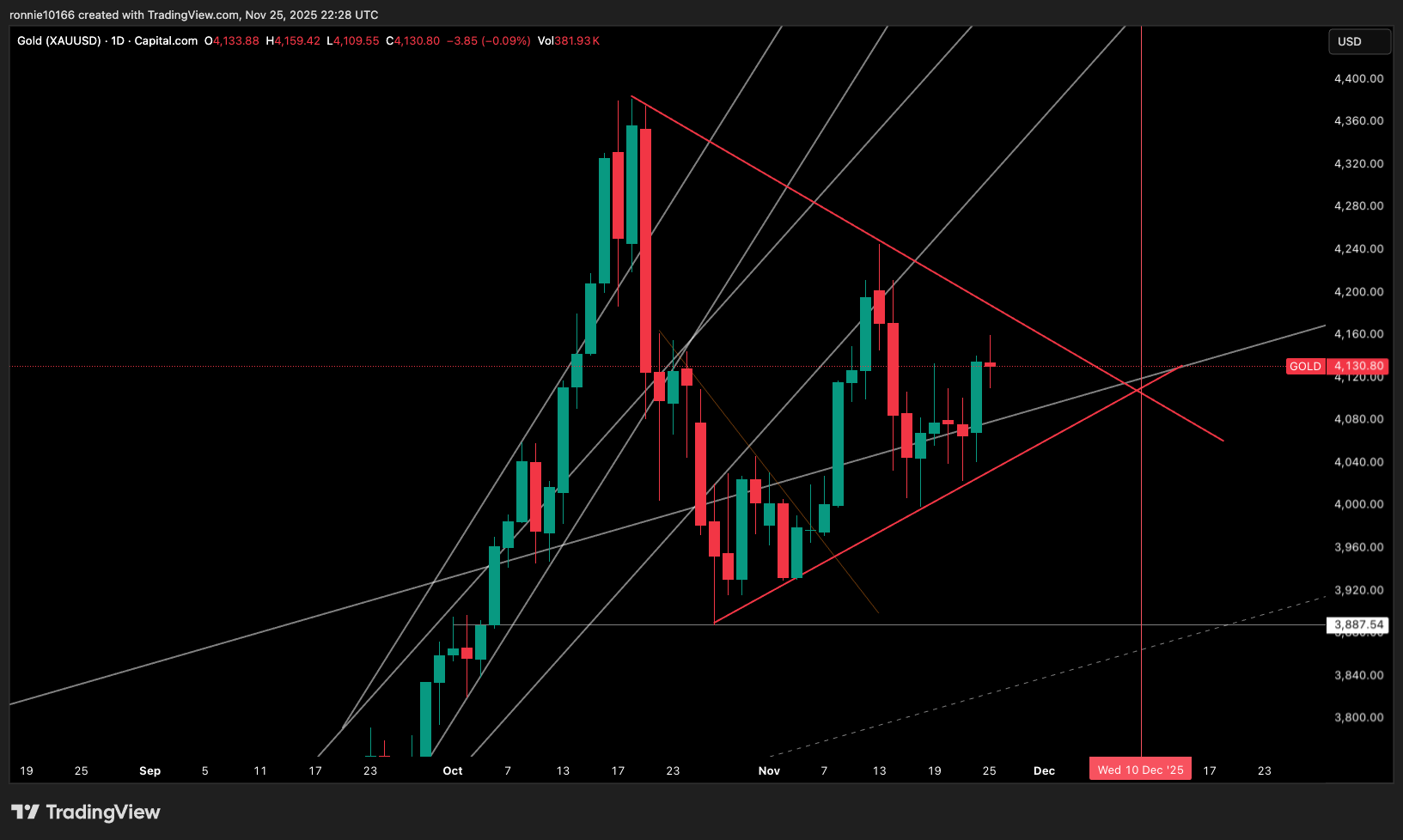 Wedge closes on 23 December so FED on 10 December may force the move. However the wedge for Gold meets on 10 December! Price will have already broken out so beware a bull or bear trap as the FED surprises.