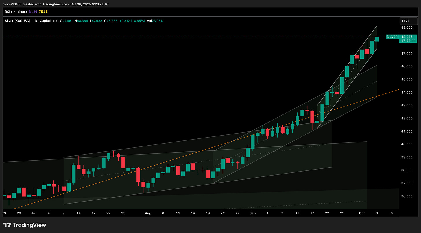 2 weeks of up only for Silver and we’re nearly at a triple top of $50.