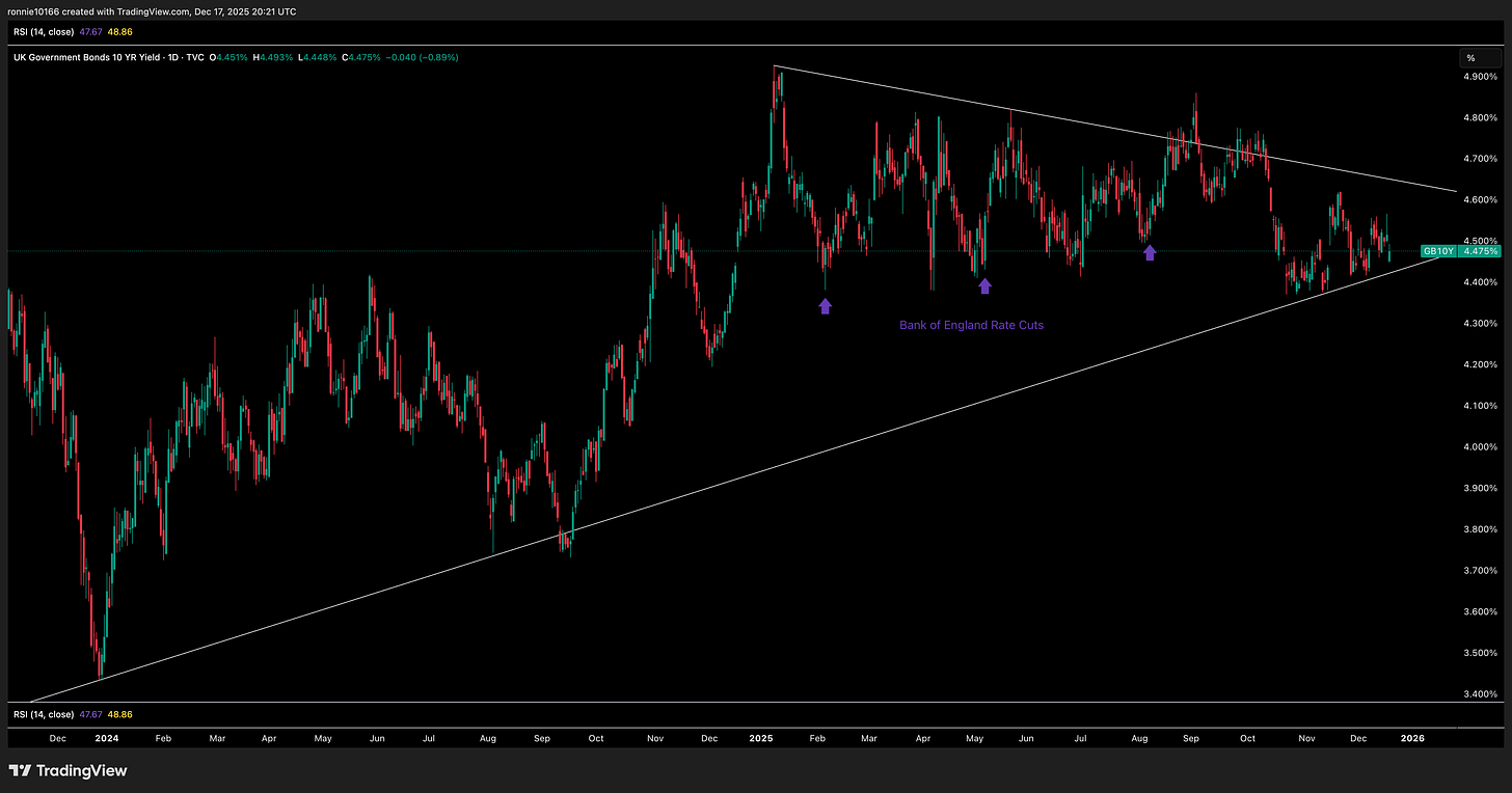 Yield is still in the wedge though and it could be a few months yet before a break out one way or another.