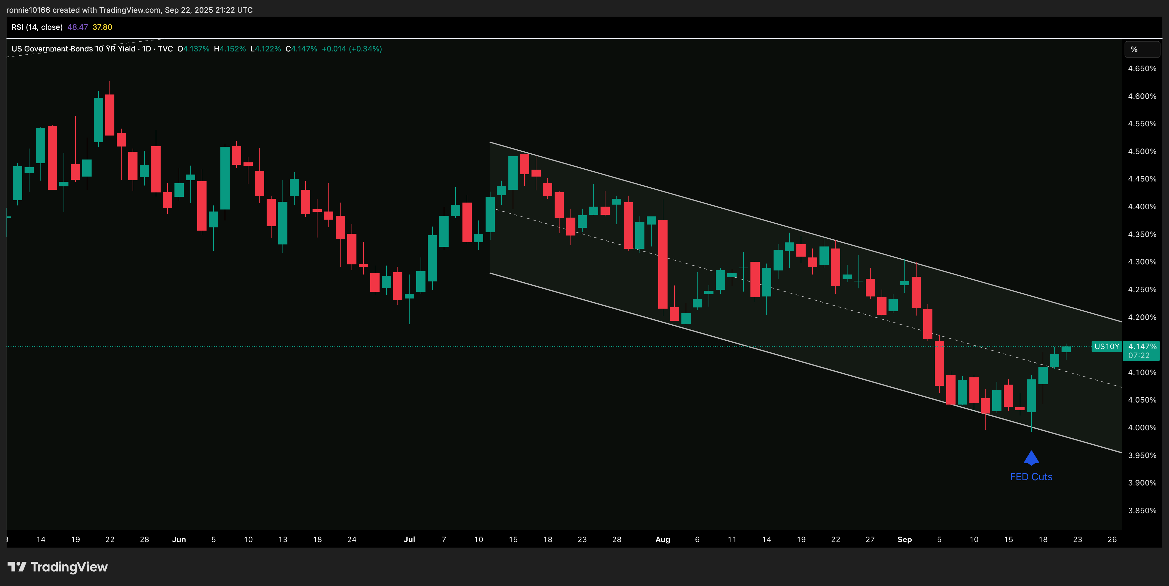 FED cuts 25bps, 10 year yield goes up 15bps (so far)