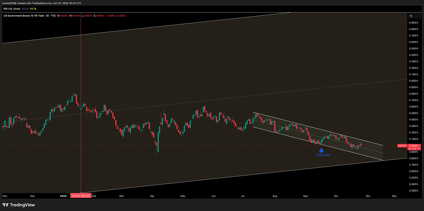 A series of further cuts is priced in the market. Issuance is high, but continual bond buybacks are keeping yield from going up.