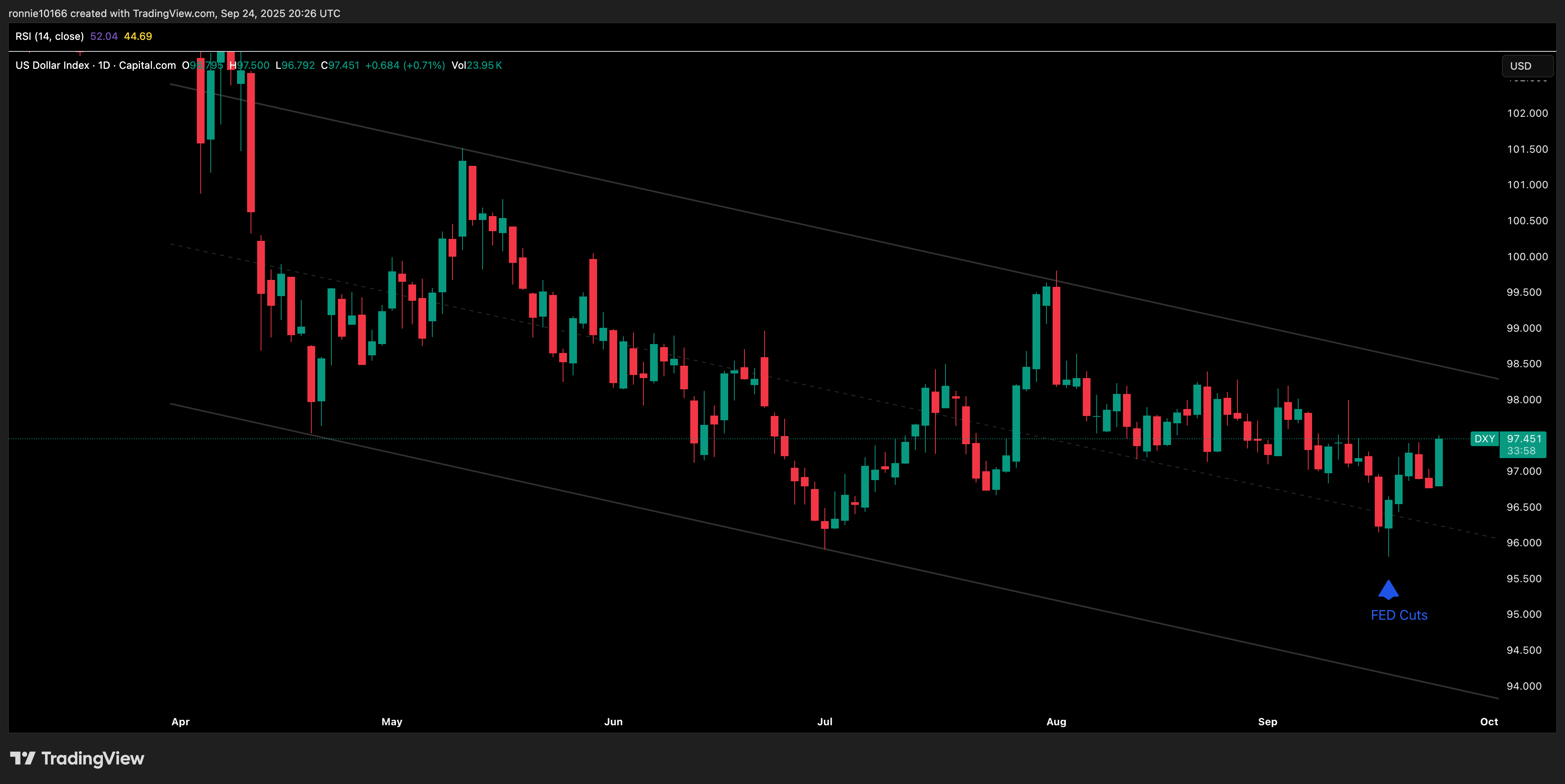 USD/DXY Update 25 September 2025Is the bottom inIan ReynoldsSep 25, 2025∙ PaidShareThe double bottom at 96.00 looks to have formed a base and we look for price to move to the trend resistance at 98.40. A break above and 98.80 becomes really interesting.This post is for paid subscribersSubscribeAlready a paid subscriber? Sign inPreviousNext