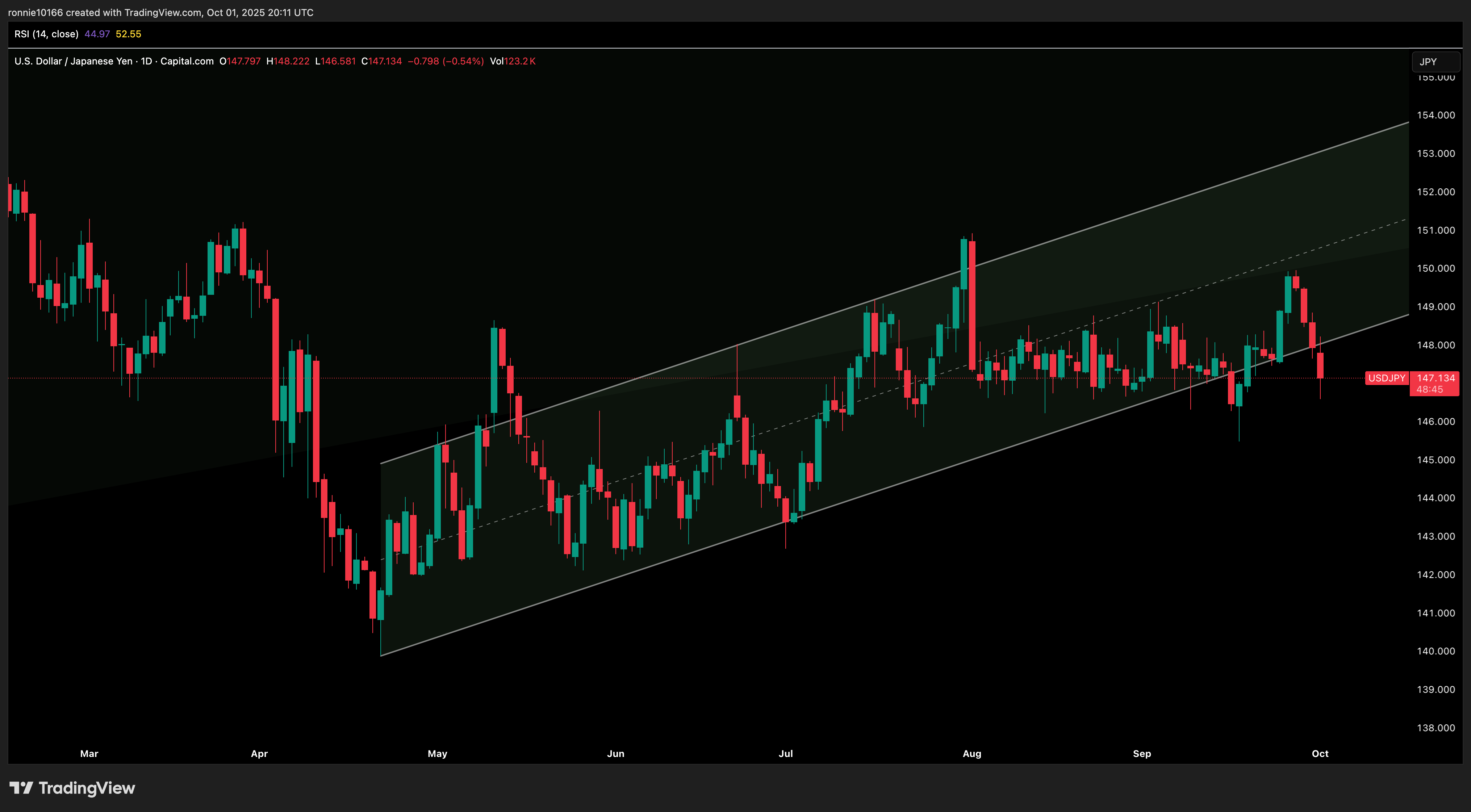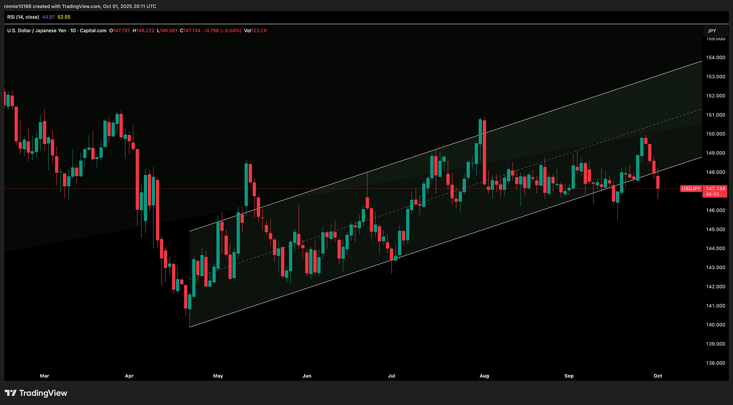 USD/YEN hasn’t confirmed below support yet. If you’re long be careful. If you’re not long, wait and see.