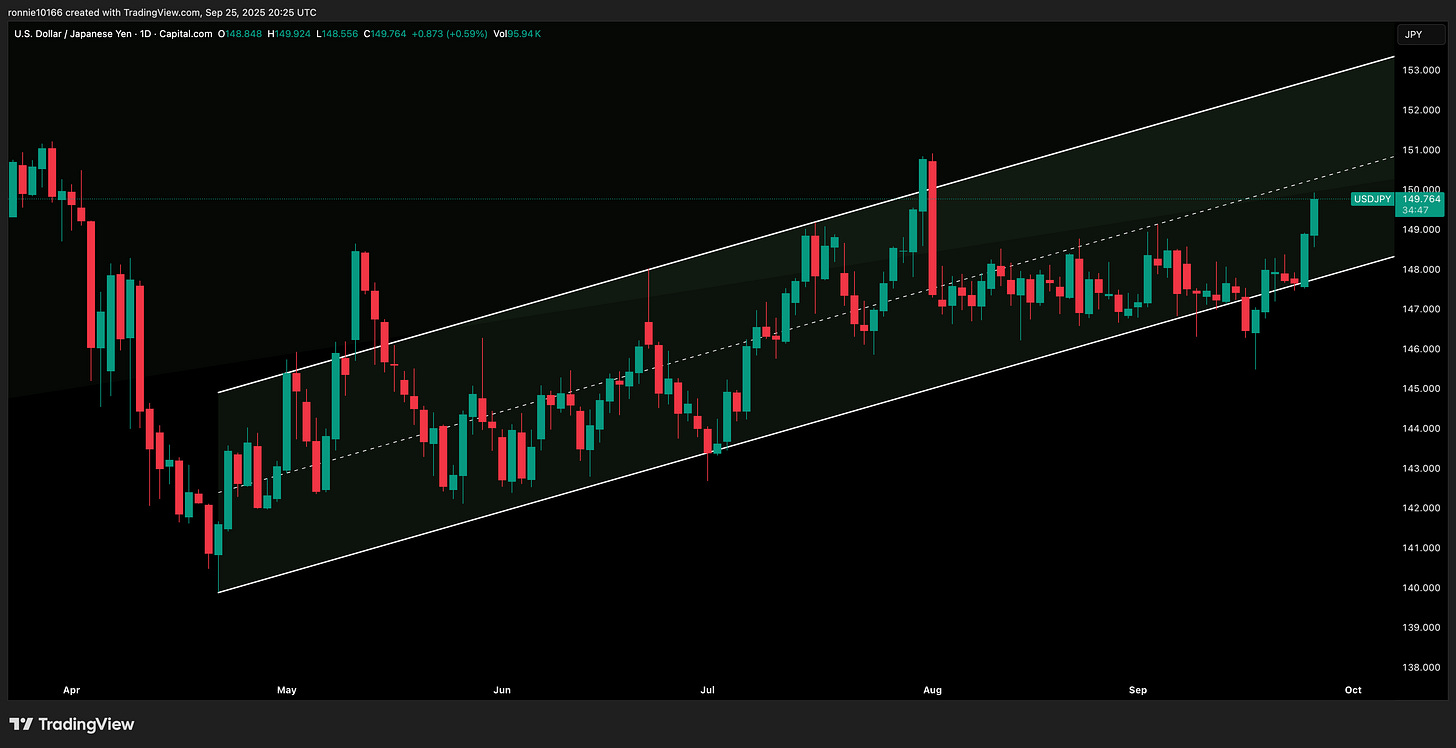 USD/YEN in this trend from May where certainly DXY hasn’t been. So we’re looking at YEN weakness (CPI trending lower suggests rates don’t go a high as they might) with now DXY strength, reversing the bull trap.